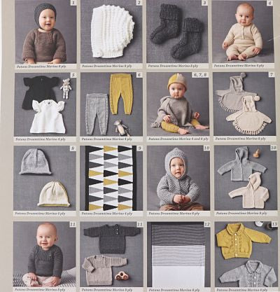 13 Knitted Designs using Dreamtime Merino 4ply and 8ply for newborns to 2 years of age. Projects include: