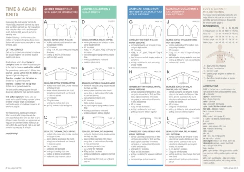 Time and Again Knits showcases a collection of 8ply knits in stocking stitch using varying construction methods. Simply choose the style of jumper or cardigan to make and choose a construction method: